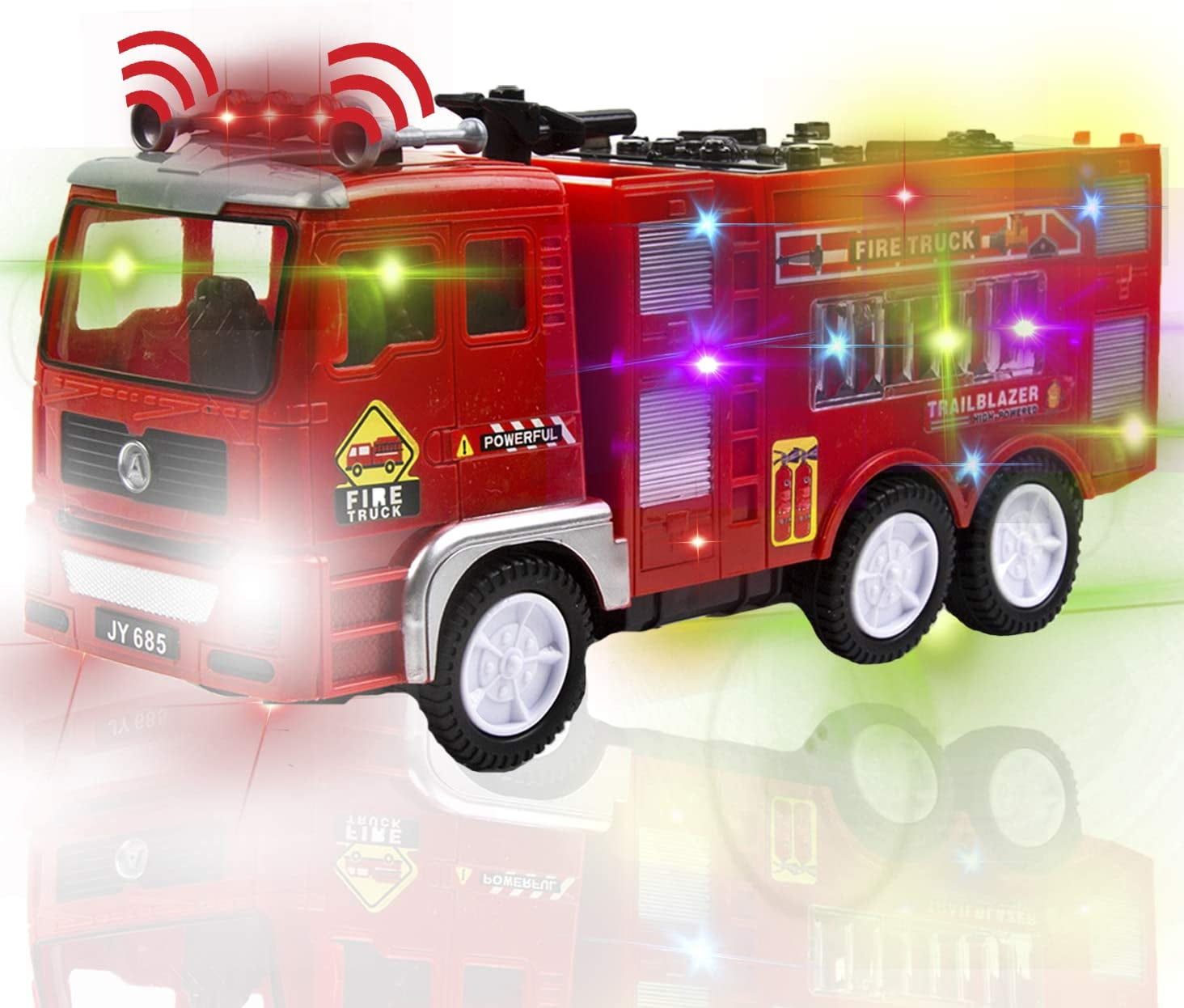 Toysery Fire Truck Toy For Kids Automatic Steering Rescue Fire Truck Toy With Flashing Lights And Real Siren Sounds Bump And Go Emergency Fire Engine Toy Truck Toys For Toddler Kids